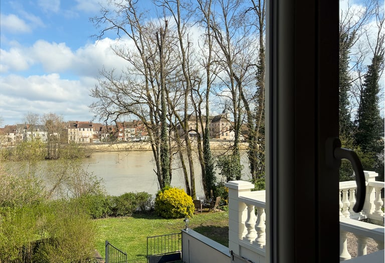 Hinter dem Tor von Le Portail 7 erwartet Sie ein ruhiger Rückzugsort direkt an der Saône. Umgeben von einem großen Garten mit über 3.000 m² lädt das Haus dazu ein, zur Ruhe zu kommen und den entspannten Rhythmus Burgunds zu genießen.